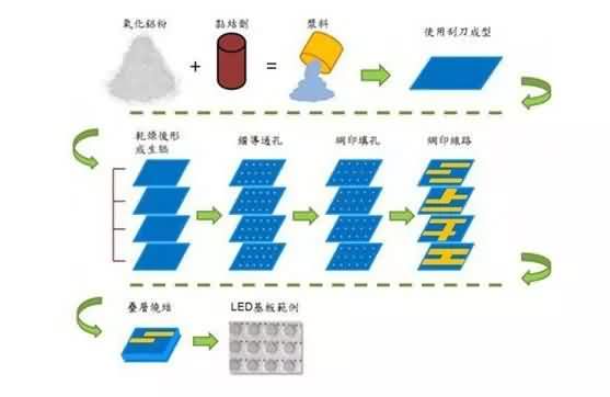 現階段較普遍的陶瓷散熱基板種類共有HTCC、LTCC、DBC、DPC四種,其中HTCC屬于較早期發展的技術,但由于燒結溫度較高使其電極材料的選擇受限,且制作成本相對昂貴,這些因素促使LTCC的發展,LTCC雖然將共燒溫度降至約850℃,但缺點是尺寸精確度、產品強度等不易控制。